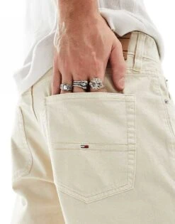 Tommy Jeans Ryan Garment Dye Pants In Off White For Men Newsprint